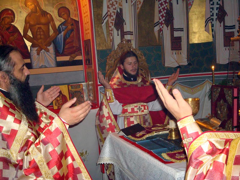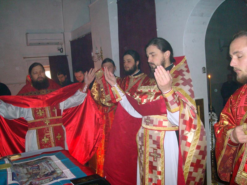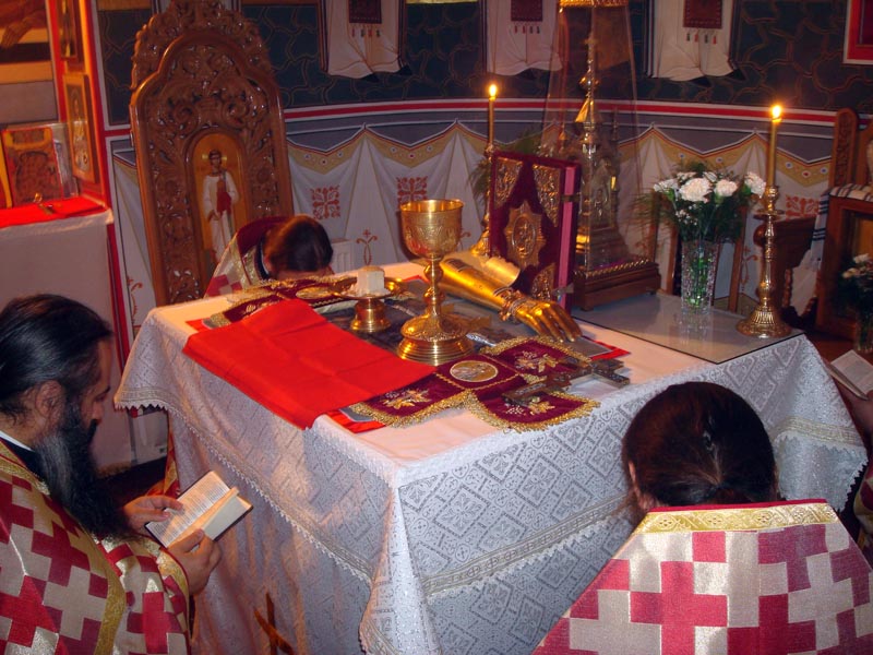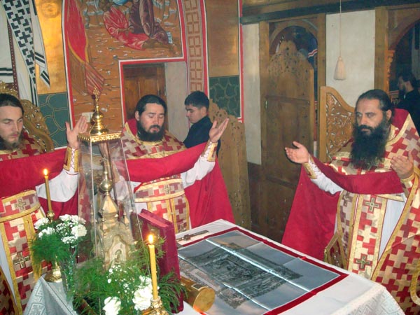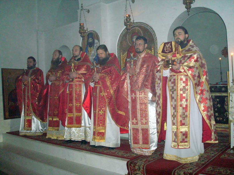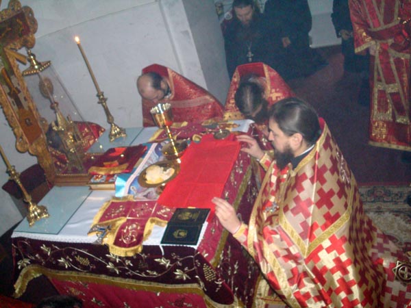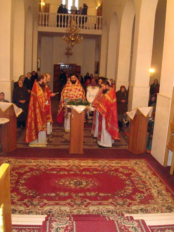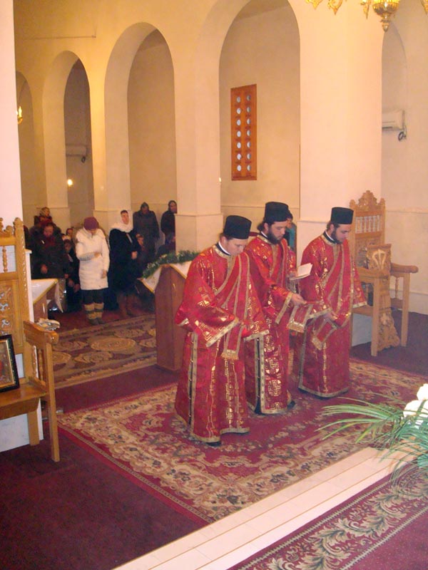 Iar dimineața în biserica mare s-a săvârșit Sf. Liturghie de către Prea Cuv. Arhim. Natanael înconjurat de către un sobor de preoți și diaconi.